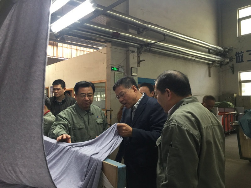 徐紀(jì)平副秘書長等領(lǐng)導(dǎo)到染部車間現(xiàn)場,實(shí)地察看了公司生產(chǎn)現(xiàn)場,向公司領(lǐng)導(dǎo)了解了公司今年經(jīng)營情況和轉(zhuǎn)型升級工作。莫總向調(diào)研組領(lǐng)導(dǎo)介紹了公司基本情況和近年來公司推進(jìn)轉(zhuǎn)型升級工作,特別是今年實(shí)施的淘汰落后產(chǎn)能實(shí)施智能化生產(chǎn)技改項(xiàng)目。調(diào)研組領(lǐng)導(dǎo)在車間里仔細(xì)察看了公司引進(jìn)的意大利貝利尼公司生產(chǎn)的超低浴比溢流多功能生態(tài)勻染染色機(jī),以及中央控制室,染料助劑自動(dòng)化輸送系統(tǒng),對公司實(shí)施智能化生產(chǎn)技改的轉(zhuǎn)型升級舉措給予高度肯定,鼓勵(lì)公司領(lǐng)導(dǎo)進(jìn)一步通過轉(zhuǎn)型升級,推動(dòng)企業(yè)向信息化、自動(dòng)化、智能化方向發(fā)展,實(shí)現(xiàn)節(jié)能減排,減員增效,提高企業(yè)競爭力,促進(jìn)傳統(tǒng)企業(yè)的新發(fā)展。