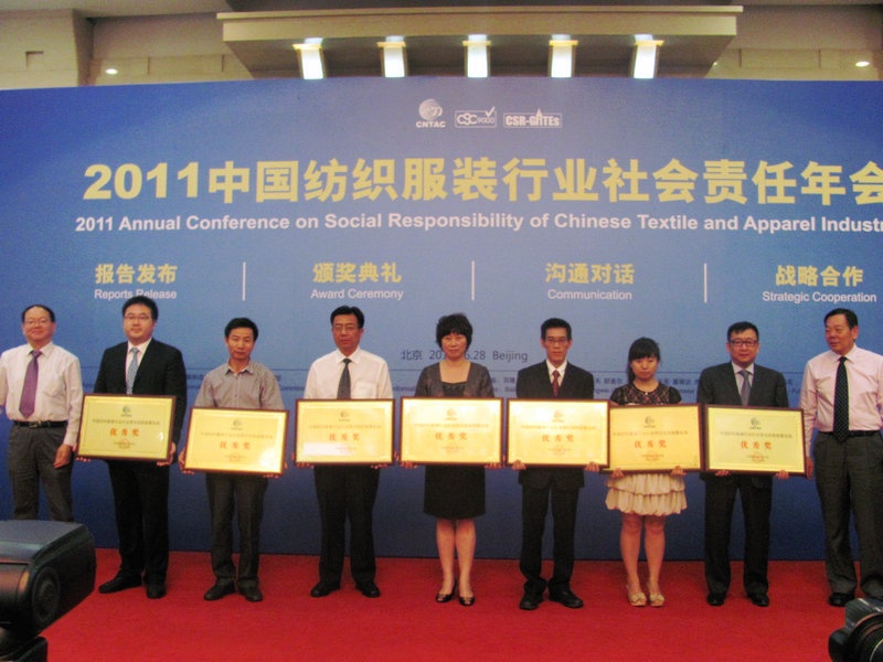 會議期間,中國紡織工業(yè)協(xié)會發(fā)布了“2010-2011中國紡織服裝行業(yè)社會責(zé)任報(bào)告”,16家紡織服裝企業(yè)同時(shí)發(fā)布了企業(yè)的2010年度社會責(zé)任報(bào)告。我公司發(fā)布的《2010年度社會責(zé)任報(bào)告》獲得了協(xié)會頒發(fā)的“2011年度中國紡織服裝行業(yè)社會責(zé)任信息披露實(shí)踐優(yōu)秀獎(jiǎng)”。莫總在發(fā)表獲獎(jiǎng)感言時(shí)表示:在堅(jiān)持“為顧客創(chuàng)造價(jià)值、為企業(yè)增創(chuàng)效益、為員工謀求發(fā)展、為社會多做貢獻(xiàn)”的企業(yè)核心價(jià)值觀指導(dǎo)下,我們將繼續(xù)努力,為紡織行業(yè)的發(fā)展做出新的貢獻(xiàn)!